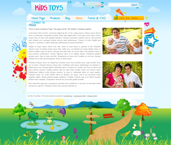色彩飽和度和亮度非常高的天空、云朵、山峰、太陽、草地以及各種卡通動植物構成的插畫背景是營造整體氣氛的最主要的元素。為了讓背景融合與整體設計之中,logo的條幅被小鳥銜著掛在空中,飛艇拉著搜索框也漂浮在藍天之上。主內(nèi)容區(qū)左側的水彩墨跡和手印、右側飛躍而出的動感的星形更增強了歡樂、可愛的氛圍。云朵狀的導航條和可愛風格的手寫文字雖然略顯粗糙,但是依然延續(xù)了同樣的設計風格。主內(nèi)容區(qū)兩張陽光明媚、充滿歡笑的家庭照片更是讓人感覺春意盎然、暖意融融。